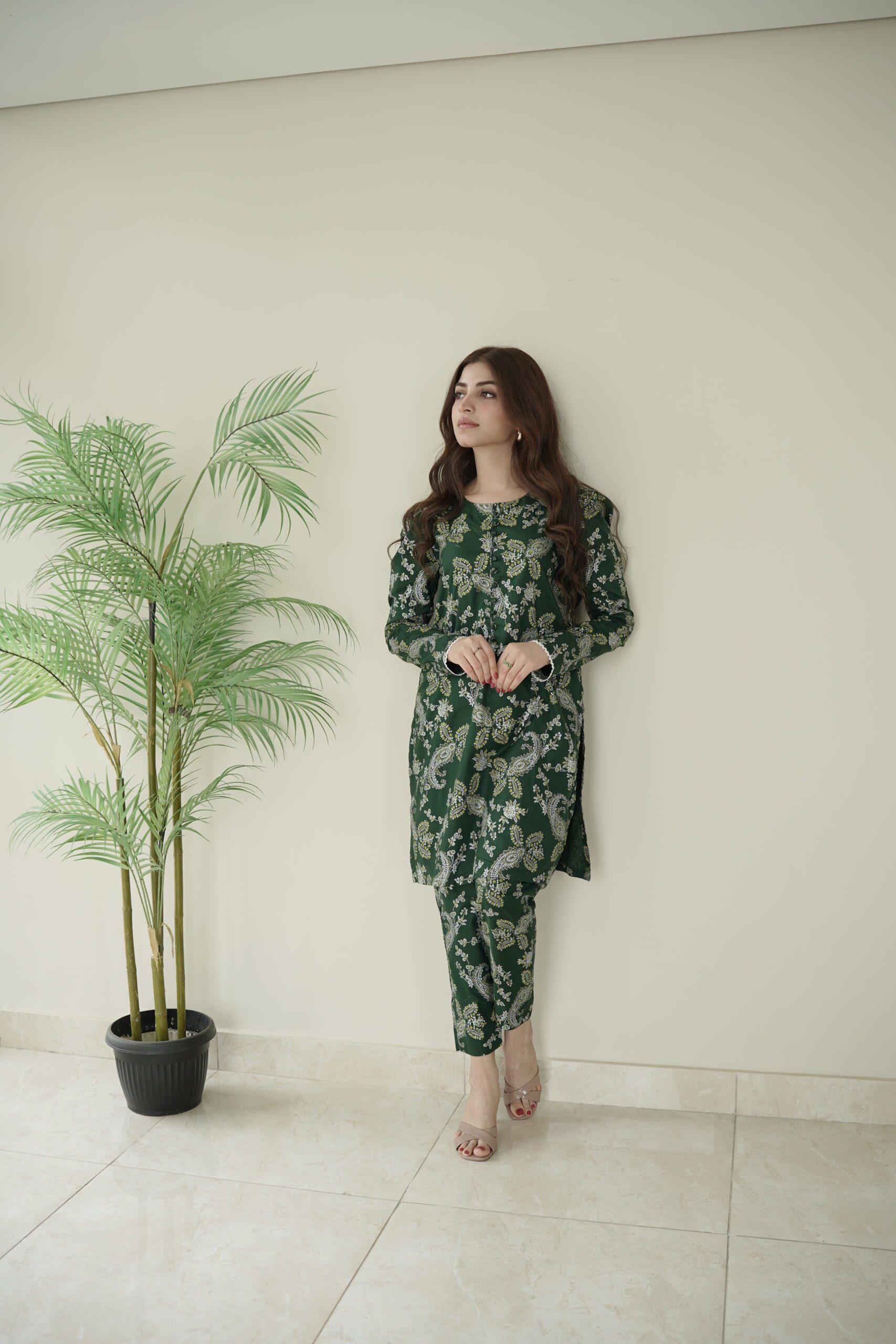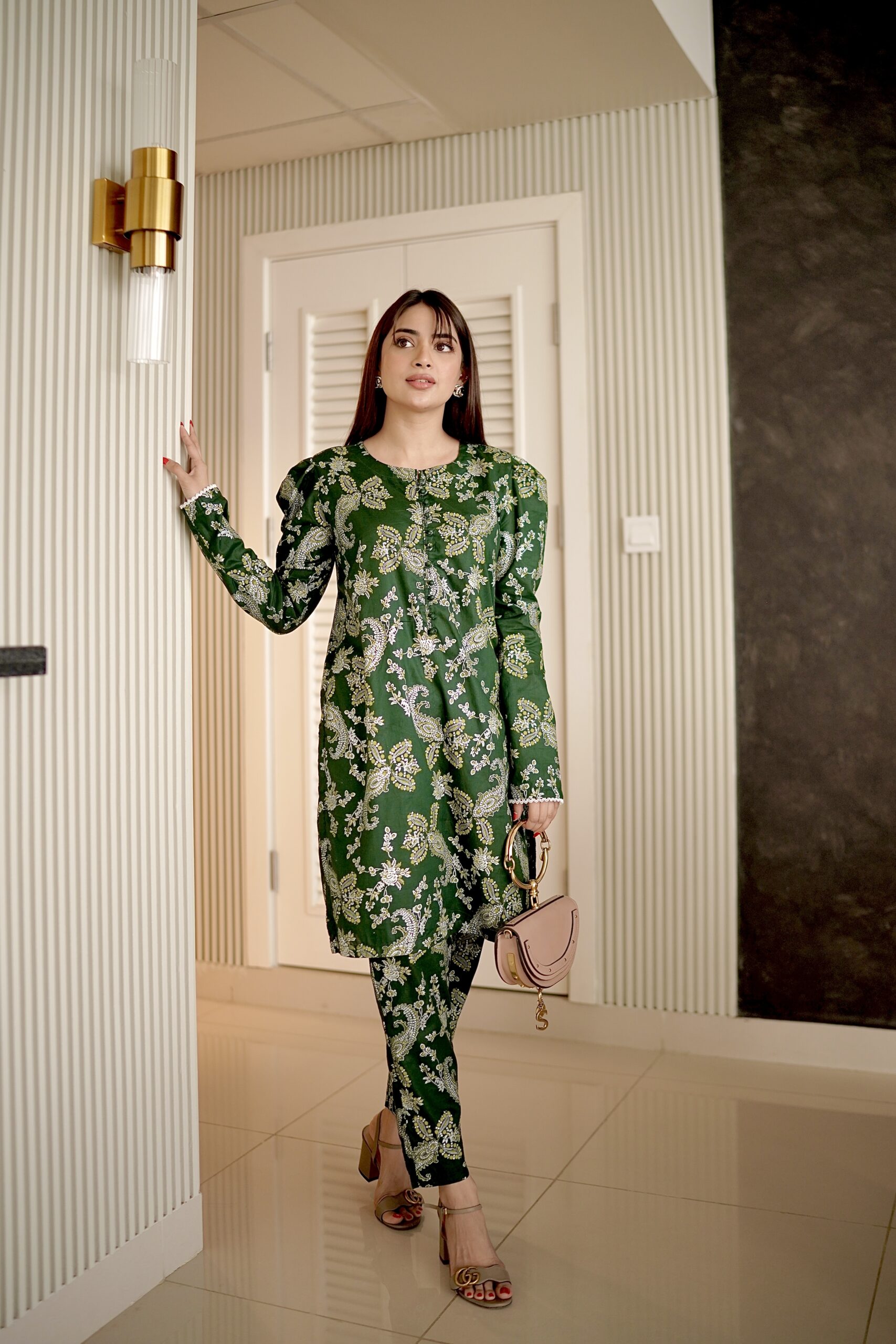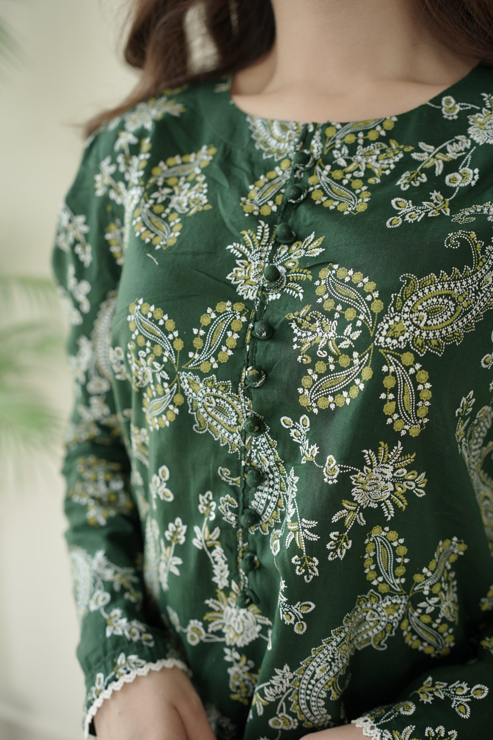 Introducing our Lunar Green 2 PC Trouser and Kameez Set, the epitome of summer elegance. Crafted from soft, breathable cotton fabric, this ensemble promises comfort, style, and versatility for the season.