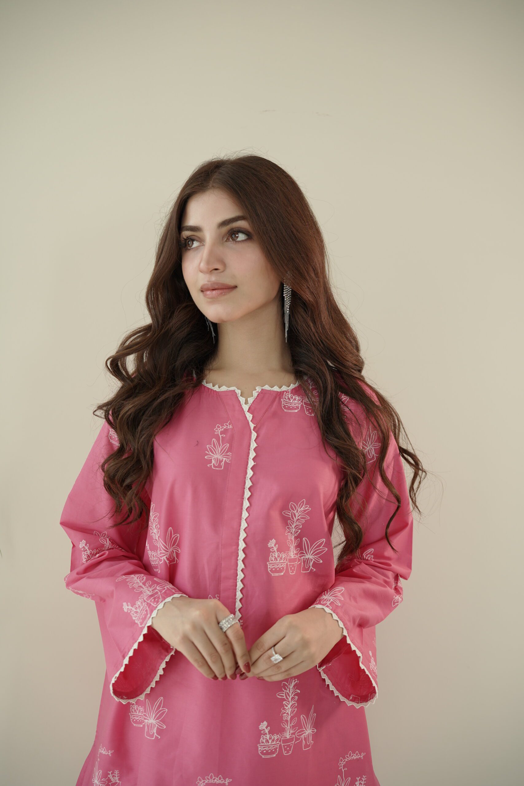 • Colors: Muted pink and white for a serene and fashionable summer ensemble